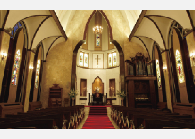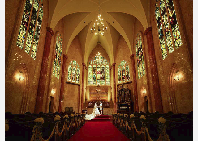 マリエカリヨン名古屋に併設された、全面ガラス張りの挙式会場